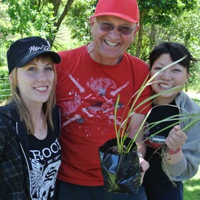 In the summer of 2012, Kim, and students Peter Lohr, Natacha Sieber and Natsuki Nishiyama, gathered together a few NZ Cabbage Trees and some Flax plants, and leveled out a place to keep them. None of us thought at that stage, that the little nursery we started that day would grow into one holding several thousand plants, all of which would eventually find their way into local conservation efforts.